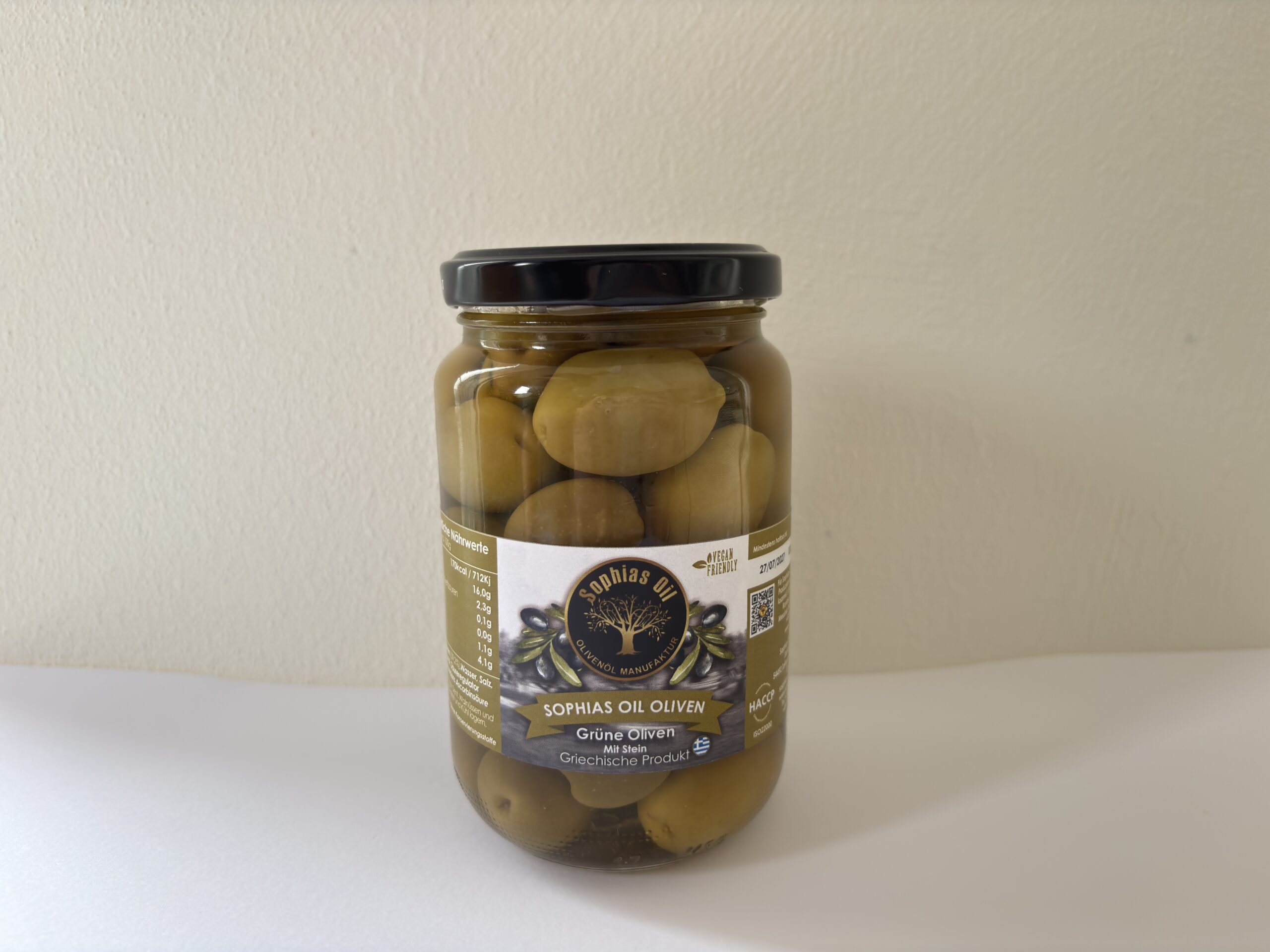 Zutaten: Grüne-Oliven mit Stein,Wasser,Salz,Natives Olivenöl Extra,Säureregulator,